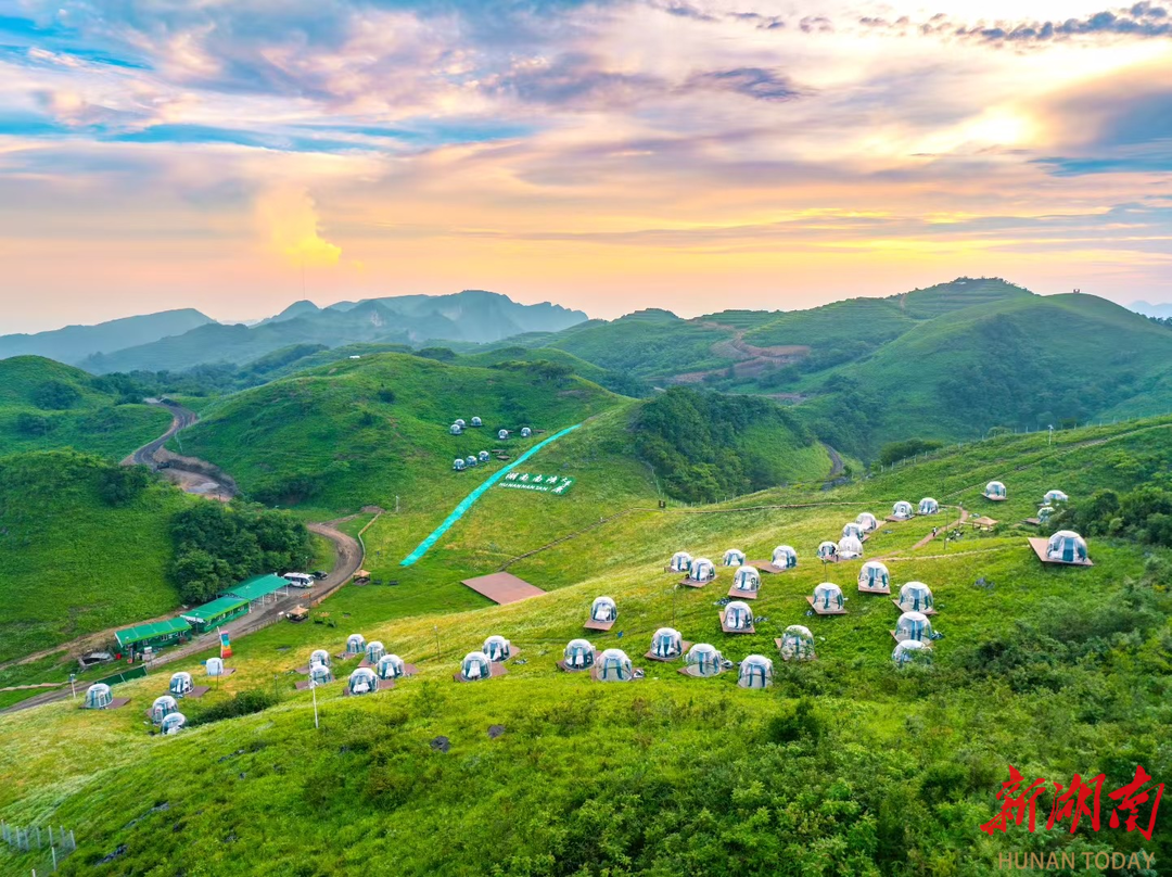 今年“五一”,桑植县南滩草原景区全新打造的123个帐篷露营基地对外开放,以草原为席、星空为顶,很快成为旅游市场新宠。“五一”期间,该景区接待游客突破5万人次,带动周边综合收入超100万元。