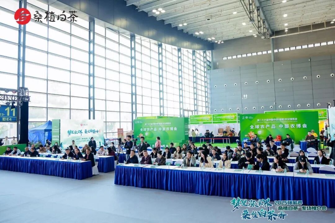 桑植融媒11月17日讯(记者 熊惠 通讯员 刘文斌)11月15日,第二十六届中国中部(湖南)农业博览会重要活动——“梦里张家界 桑植白茶香”桑植白茶专场推介会在长沙国际会展中心举行。桑植县政协副主席王建群出席并致辞,县农业农村局、商务局相关负责人,县茶业协会及县域龙头企业代表共同参与,向全国客商与消费者展示了桑植白茶的独特魅力。