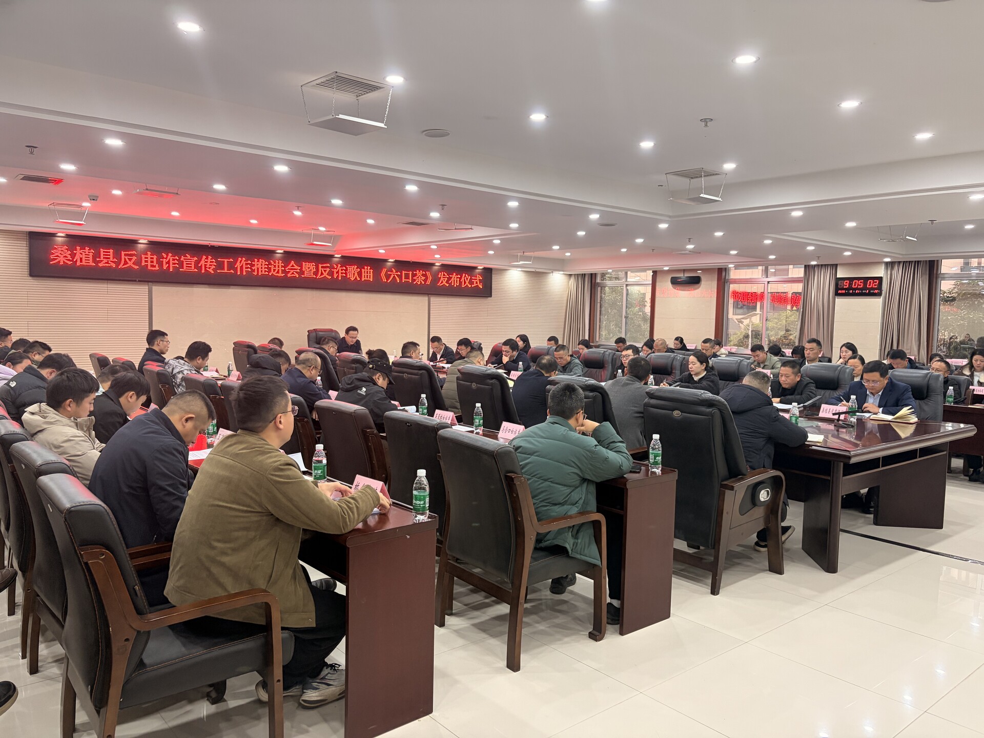 桑植融媒12月10日讯(记者 熊惠)12月10日,桑植县召开反电诈宣传工作推进会并举行反诈歌曲《六口茶》发布仪式,深入分析当前全县反诈工作面临的形势,安排部署常态化“全民反诈”集中宣传活动。县委副书记、政法委书记王兴树宣布反诈歌曲《六口茶》正式发布,县委常委、宣传部部长王玉成,副县长、县公安局局长刘克敏出席。