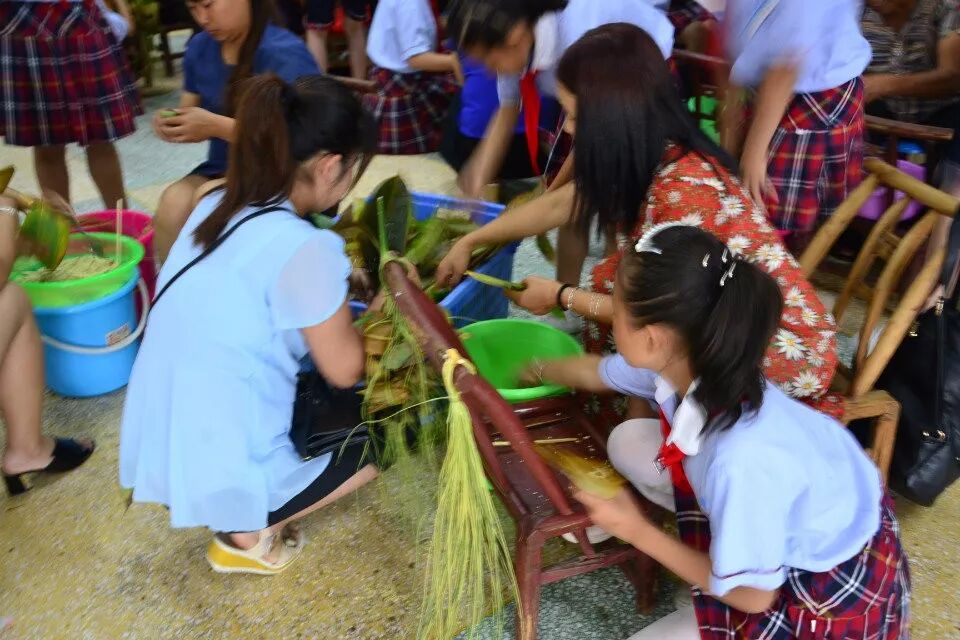 整个食堂热闹非法,学生、老师、家长们不停地忙碌着,食堂飘出阵阵糯米的清香。