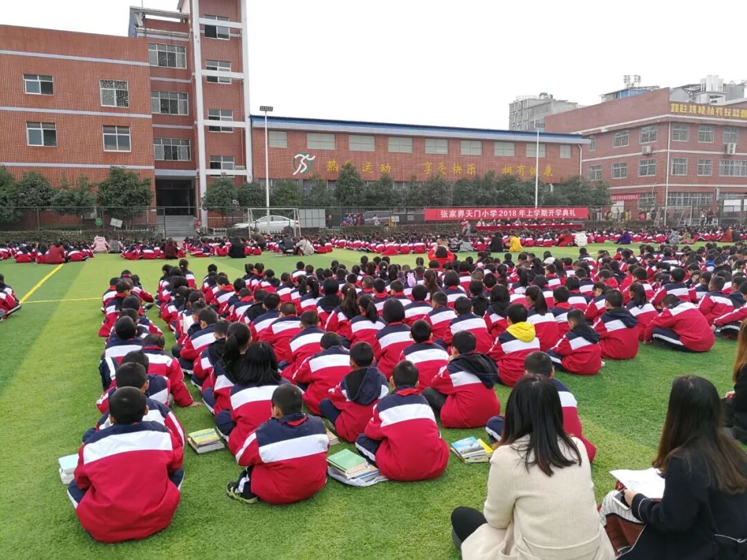 3月4日上午,张家界天门小学举办了一场别开生面的开学典礼。三千余名师生在绿茵场上席地而坐,共同聆听读书者的阅读分享,整个校园弥漫着浓浓的书香。