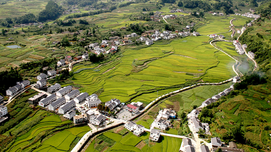 中峰镇同庆沟村茶山稻海风景秀美。竹溪县文明办供图