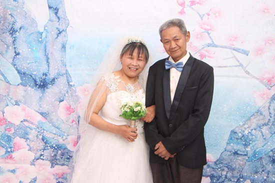 “爱在七夕 留住美好”主题活动免费为老人拍摄结婚照。邱颖 摄