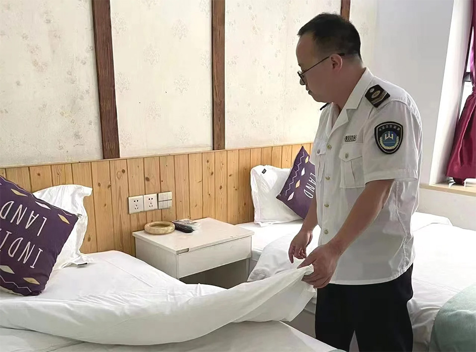检查中,执法人员严格按照疫情防控要求以及《公共场所卫生管理条例实施细则》相关法律法规要求,结合实际情况,对酒店、旅发会重点观摩项目、景区景点集中空调通风系统的清洗消毒、公共用品用具清洗消毒保洁、饮用水安全、从业人员持有效健康证上岗、疫情防控措施落实和公共区域消毒等情况进行了卫生监督检查,对检查中存在的问题现场下达了卫生监督意见书,提出了具体的整改意见,要求立即整改并督促落实,消除卫生安全隐患,认真做好旅发会期间的公共卫生安全保障工作。截至目前,共派出卫生监督人员88人次,完成公共场所和供水单位卫生监督检查320户次,下达整改书通知320张,全力保障旅发大会公共卫生安全。