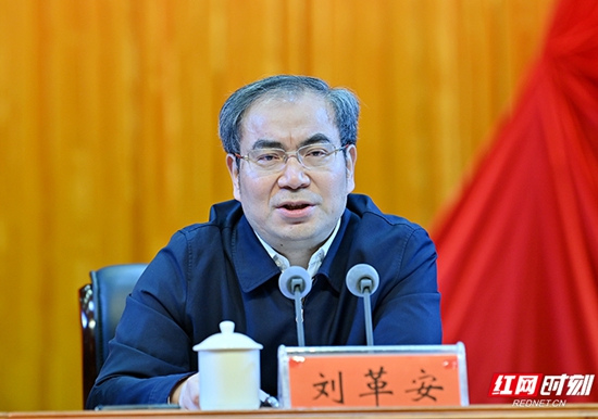 刘革安强调,要坚持用马克思主义中国化时代化最新成果武装头脑,筑牢忠诚拥护“两个确立”、坚决做到“两个维护”的思想根基。要正确把握社会主要矛盾和中心任务,把认识和化解矛盾作为打开张家界工作新局面的切入口。要牢固树立加快发展的追赶意识,坚持不懈抓重点、补短板、强弱项,千方百计促发展,全力办好发展经济这个最大实事。要着力解决好“船”和“桥”的问题,突出抓发展平台、承载力提升、品牌建设、市场主体培育,聚焦重点攻坚克难,在加快发展、构建现代综合交通体系、全面提高基层治理能力等关键环节实现新的突破。要从对矛盾的运用和转化中把握主动,正确看待和处理好稳与进、旅游强市与工业强基、发展与安全、发展与民生、经济发展与生态保护之间的关系,统筹抓好各项工作。要强化系统思维、增强全局意识,善于从战略和策略的结合上谋划推动张家界发展,永葆“闯”的精神、“创”的劲头、“干”的作风,在贯彻新发展理念、构建新发展格局、推动高质量发展上出新招硬招实招。要勇于自我革命、从严管党治党,永葆马克思主义政治本色,做到绝对忠诚、信念坚定、负责担当、以民为本、守住底线。要推进党史学习教育常态化长效化,在学习常态化中进一步树牢正确党史观,在教育长效化中进一步传承红色基因,在成果制度化中进一步改善民生福祉,在新的赶考之路上砥砺奋进。